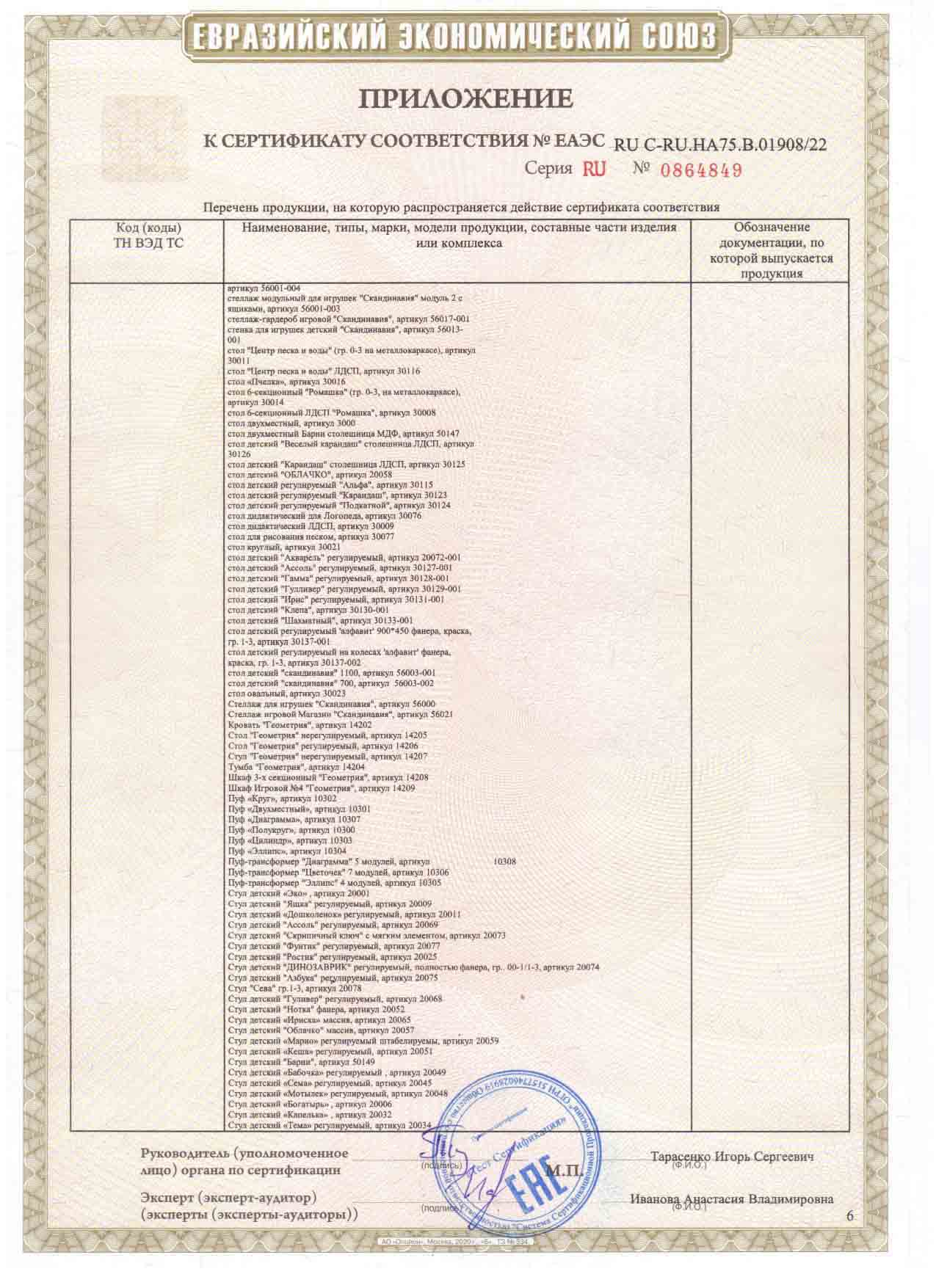 Вся мебель сертифицирована и соответствует ГОСТам пройдёт любую госпроверку